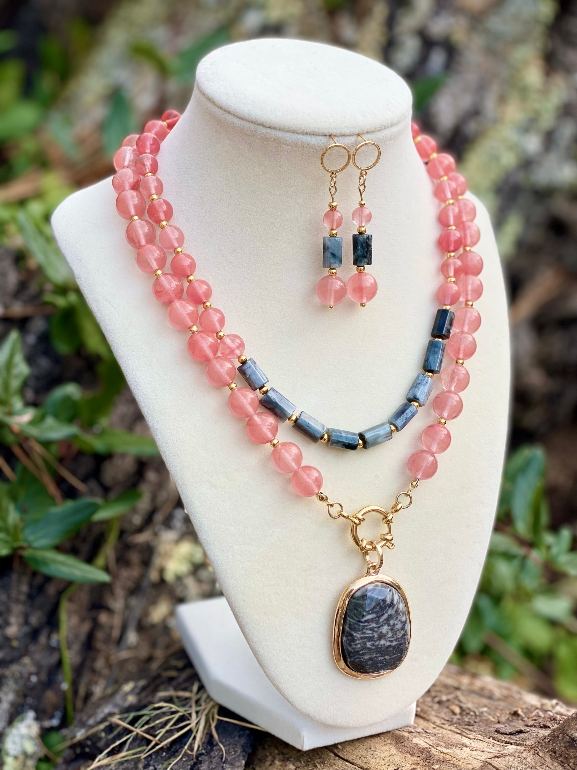 Embrace your unique style and harness the power of nature with this stunning handmade necklace featuring hawk eye and watermelon quartz stones. Each piece is meticulously crafted, highlighting the natural beauty and vibrant colors of these extraordinary stones.
